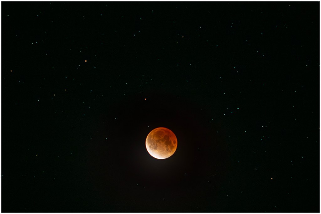 During this eclipse, however, I did something very common in astrophotography: I took two exposures of the same scene—one exposed for the moon and one for everything else. This allowed me to capture detail in the moon without it being blown out. I achieved this by adjusting the ISO and shutter speed between shots. In Photoshop I stacked the images and used masking to combine the best parts of both exposures. It is a bit of a trick, and I admit I feel somewhat guilty for doing it.