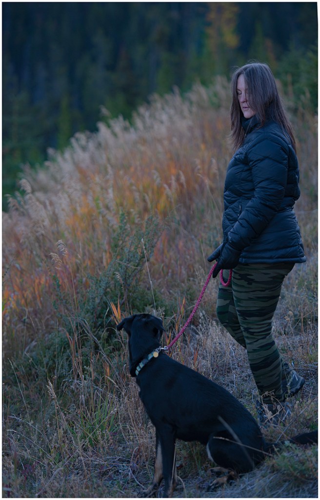 Lisa and I headed up the creek with Lola and Willow. It was chilly with frost on the windows. It would have suited me to go towards the sun on the west side, instead we went east where the mountains get bigger, taking the sun longer to rise.