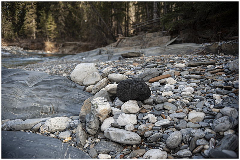Then we came across a black rock that didn’t belong. It was the only black rock in the river bed. The only black rock I’ve seen in the area. It was out of place. The river would normally be over it.