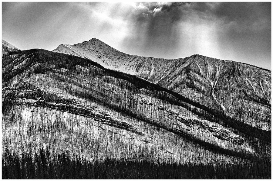 The Palliser Fire is still going in places. Forest fires have been known to burn roots underground for months. Lisa and I wandered around. Lisa was hurt to see some of our favourite places burned. Rock Creek was burned badly.