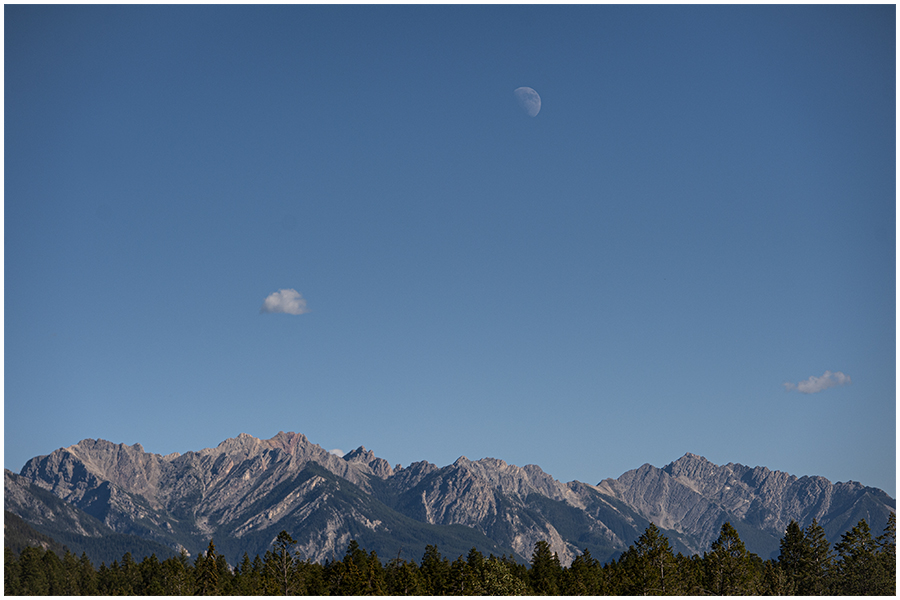A half waxing moon came up in broad daylight. The sky was blue and lent the perfect backdrop.
