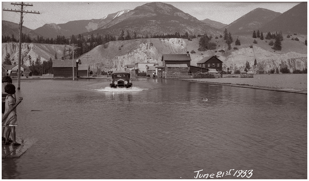 Athalmer flooded. Notice the two youngsters, pole in hand, ready to save the coupe if needed.