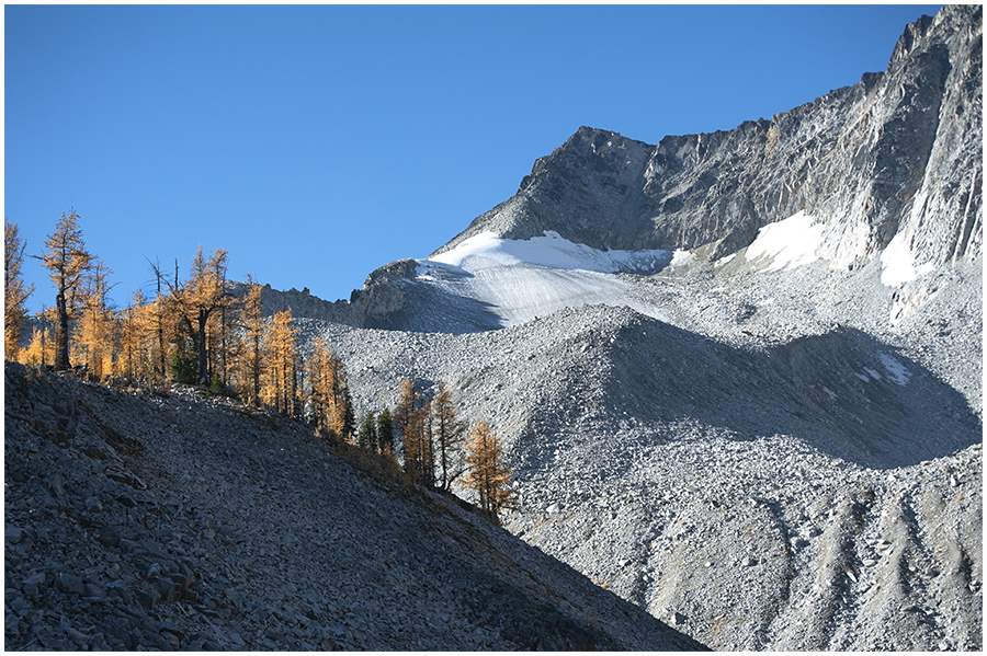 The hike up was great through the forest, along Welsh Creek, picking through the moraine to the first lake. The entire area at one time covered by glaciers. I always imagine what it looked like back in time. Now the remaining glaciers are on the highest points of the mountains.