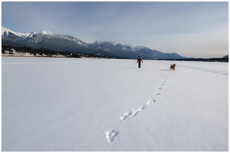 Willow and I headed behind Swansea to walk it off. We pushed to the upper reaches and stopped before the ridge. Willow was happy. The snow was fine on her feet. It was about -10°c and didn’t ball up. The sun felt good when we broke into it. The waning moon held steady in the blue sky.
